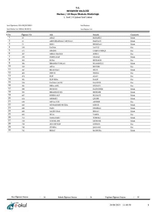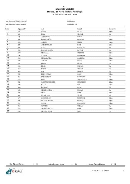 2025/2026 EĞİTİM ÖĞRETİM YILI E-OKUL SISTEMİ TARAFINDAN YERLEŞTİRME 1. SINIF KURA SONUÇLARI AÇIKLANDI